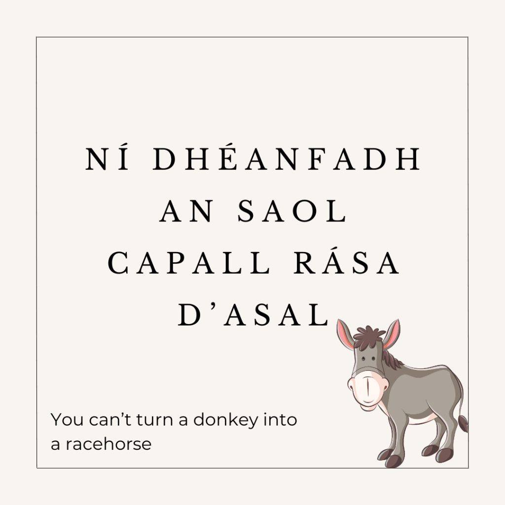This is a gentle way of acknowledging people’s limitations. Animals often dominate funny Irish quotes, like the following two: