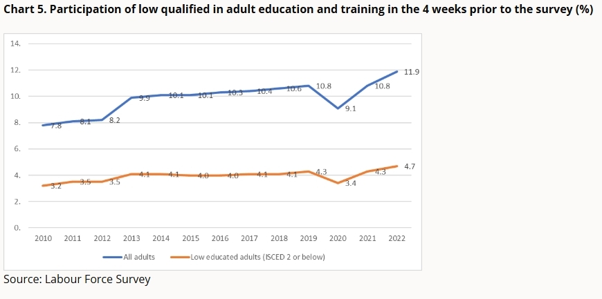 In 2022, nearly 43 per cent of people between the ages of 25 and 64 did not, nor did they want to participate in training.